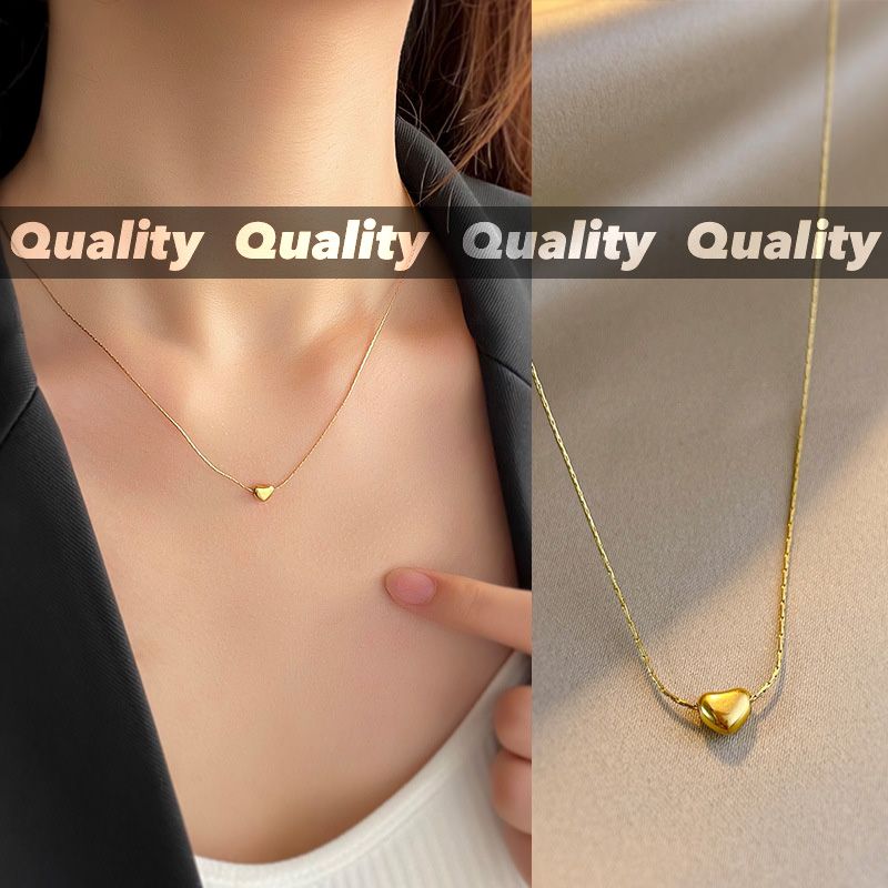 Hot Sale Compact Exquisite Titanium Steel Heart-Shaped Golden Necklace For Women Featuring Elegant Design Non-Fading Metal Heart-Shaped Clavicle Chain